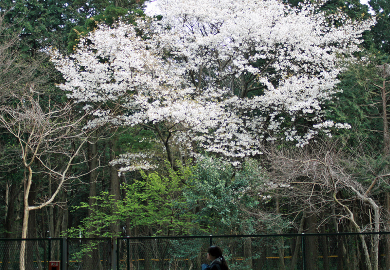 駐車場枠の雑木林に1本だけある桜が満開でした。